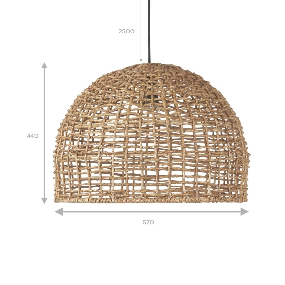 Met een diameter van 57 cm en een hoogte van 44 cm creëert de Cebu een gezellige lichtcocon. De E27-fitting (max. 15W) biedt ruimte voor een energiezuinige LED-lamp, die een warm en zacht licht door de vlechtwerk laat filteren voor een betoverend schaduwspel.