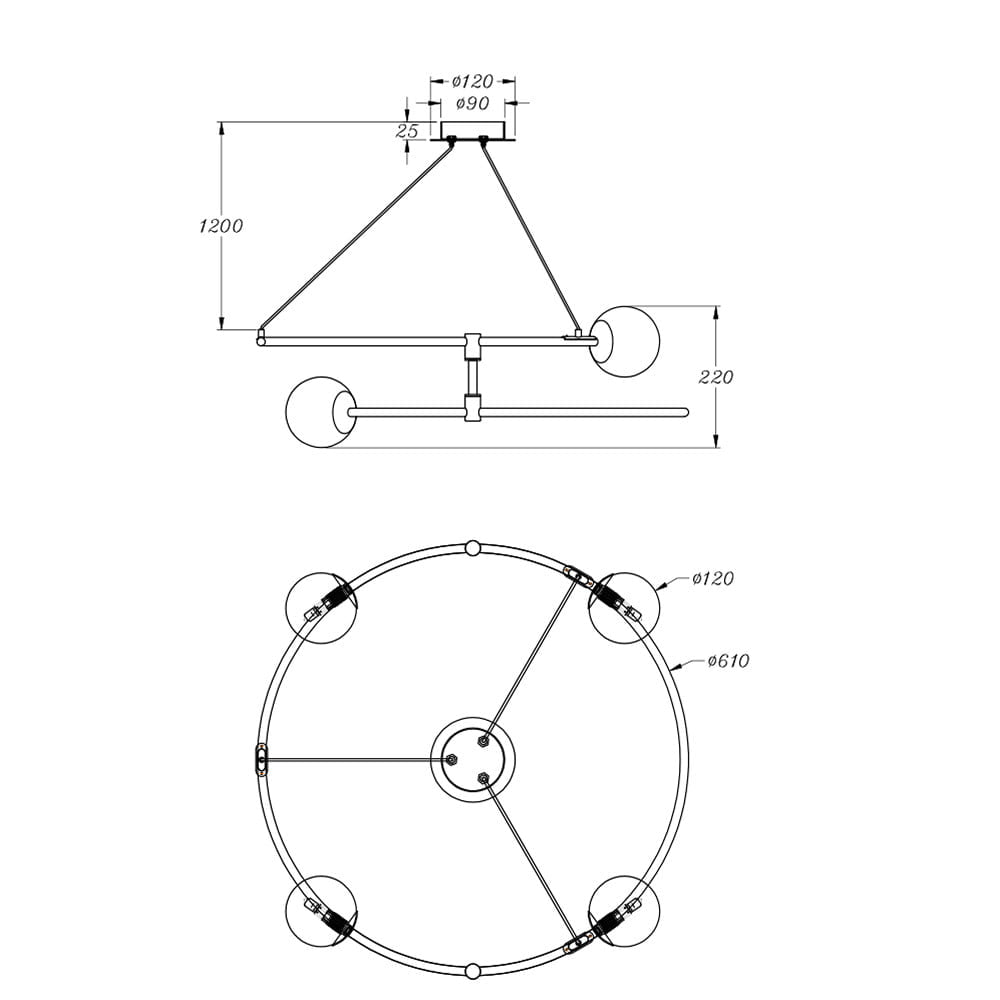 - De armaturen zijn ontworpen voor 4 en 6 lampen, hun hoogte kan worden aangepast met een kabel.