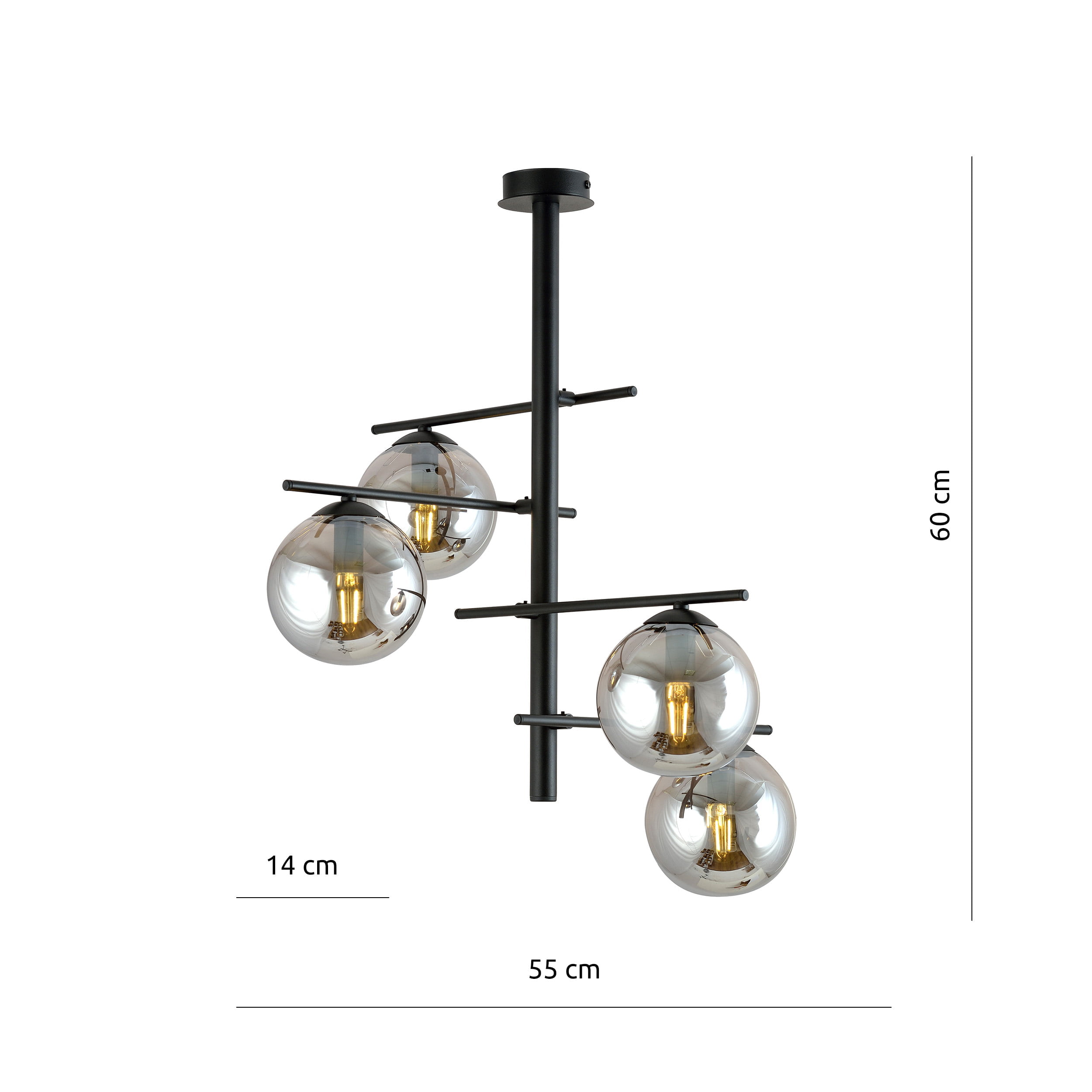 Hanglamp Concord 4 Zwart/Smoke Ø 55 cm