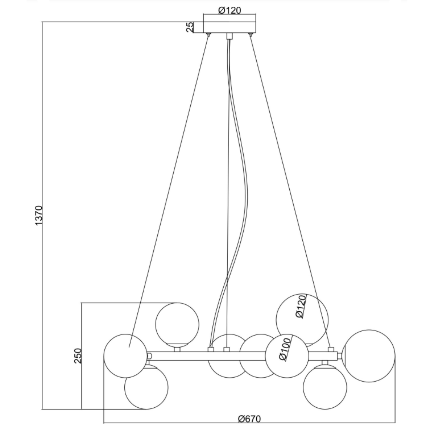 - De belangrijkste materialen van de hanglamp is glas en metaal.