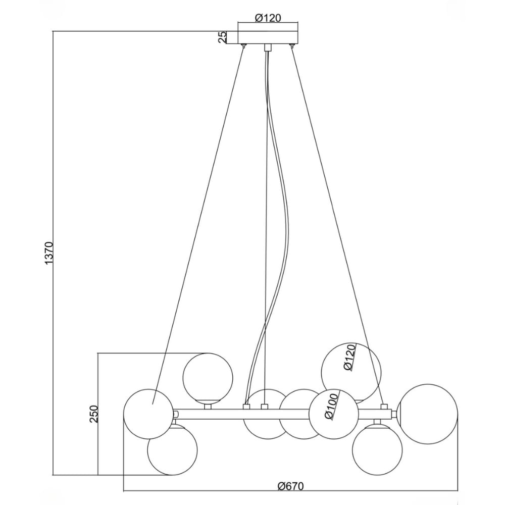 - De belangrijkste materialen van de hanglamp is glas en metaal.