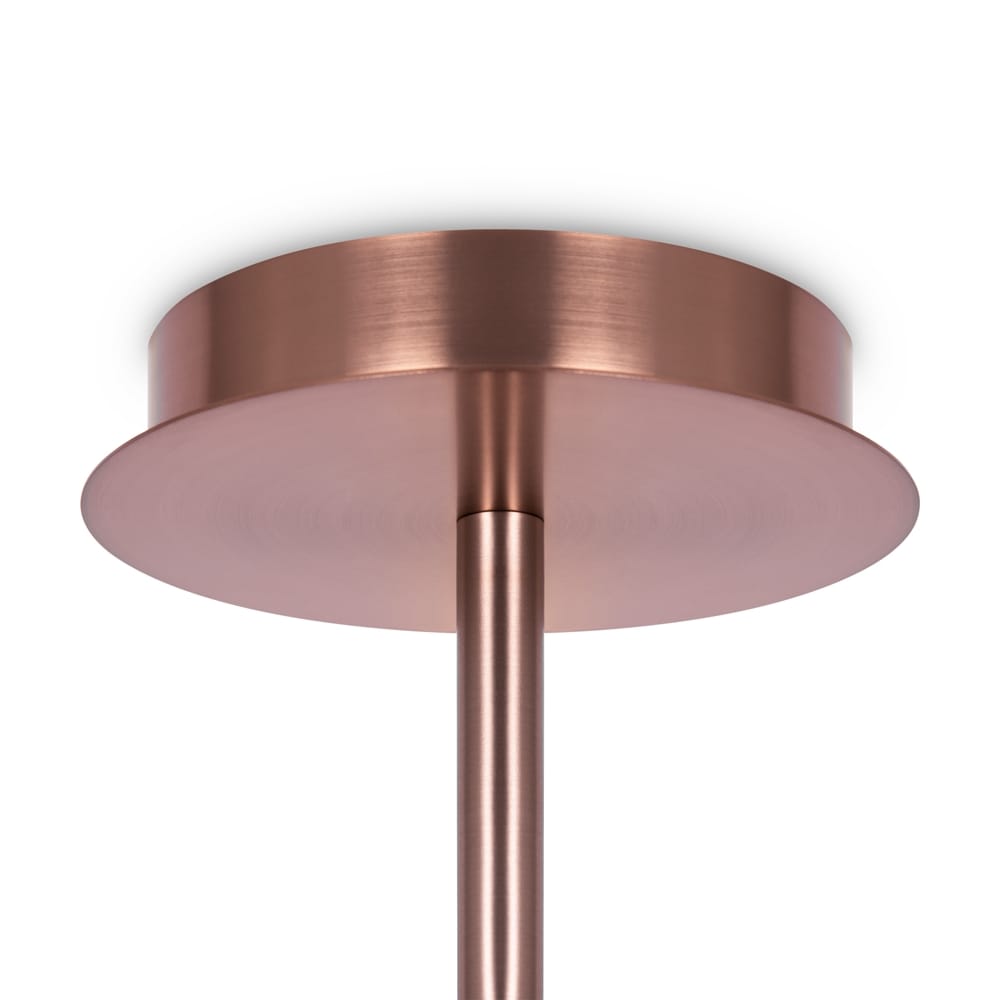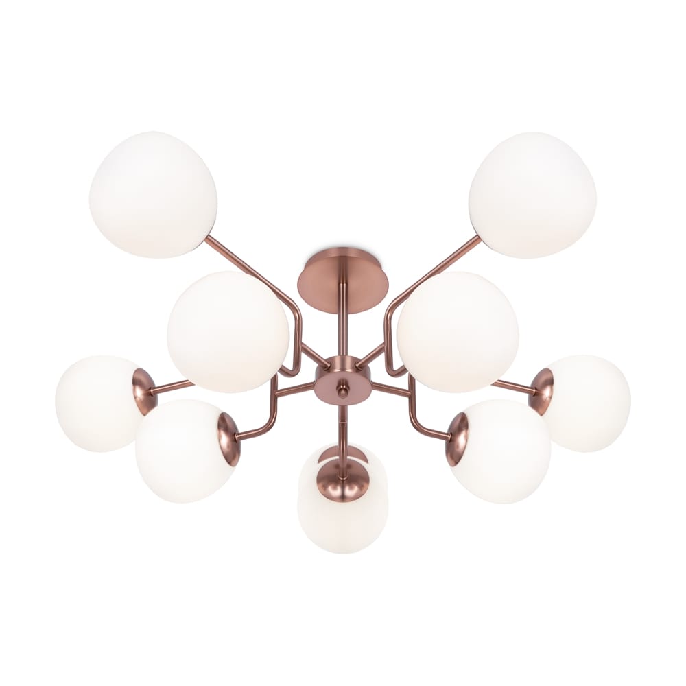 - Zwevende ronde bolvormige diffusers bevestigd aan een metalen frame.