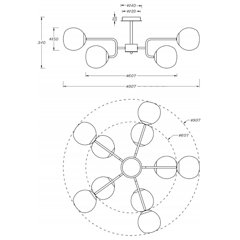 - Zwevende ronde bolvormige diffusers bevestigd aan een metalen frame.