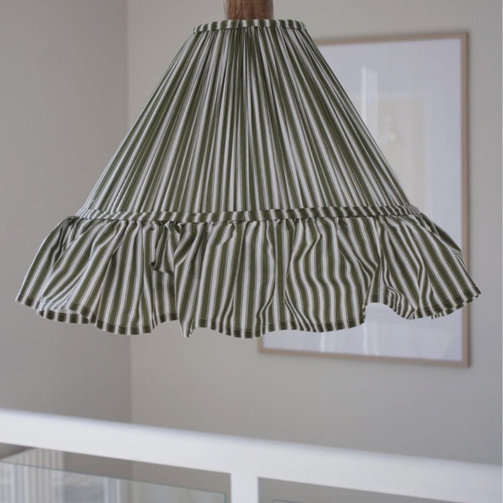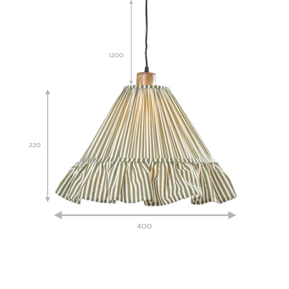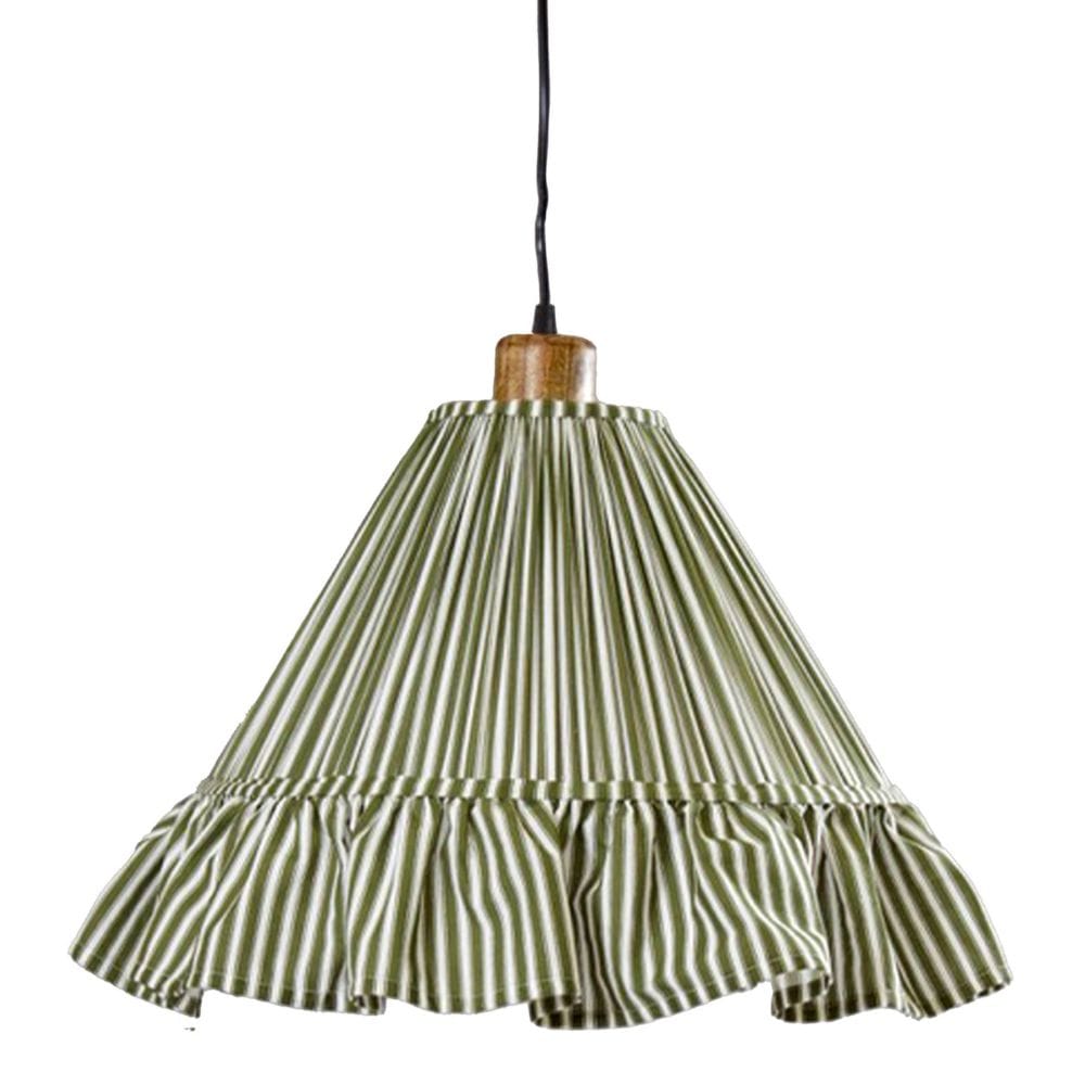 Hanglamp Estrid Mosgroen | Gestreepte Stof & Mangohout | Ø 40 cm | PR Home