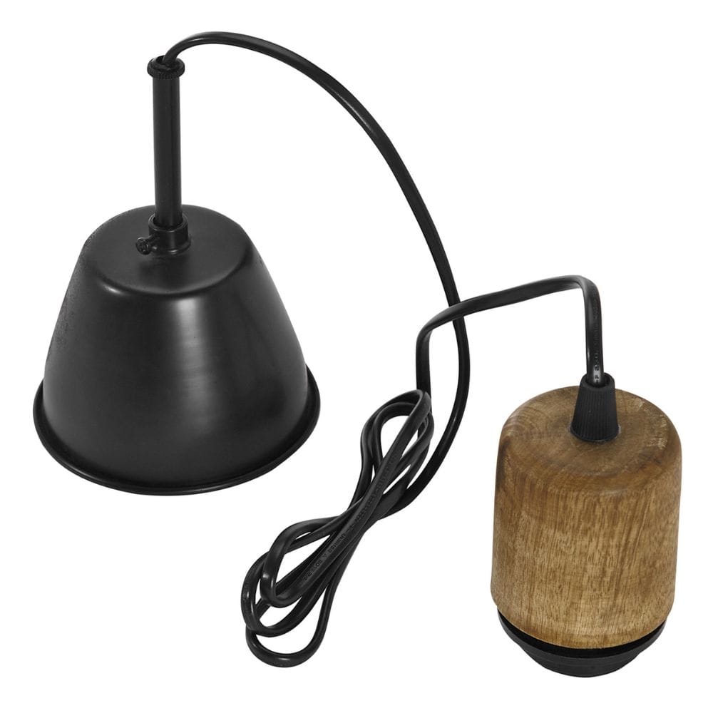 De lamp wordt compleet geleverd inclusief een fraaie mangohouten luifel (plafondkapje), wat zorgt voor een stijlvolle en afgewerkte look. De gedetailleerde afwerking benadrukt het ambachtelijke karakter van het ontwerp.
