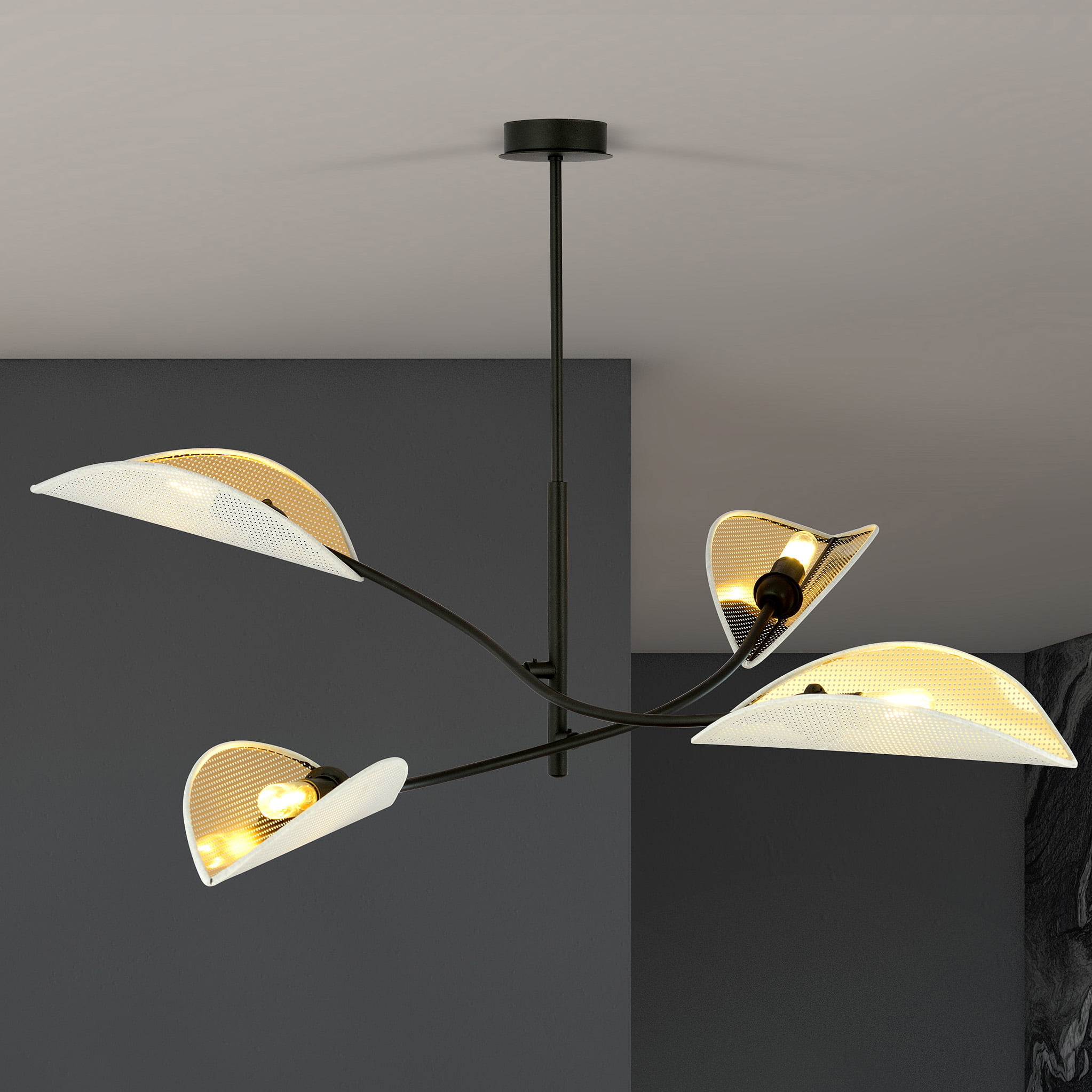 • Dankzij de open lampenkappen zal de LOTUS hanglamp de kamer zeer goed verlichten en een unieke sfeer creëren.