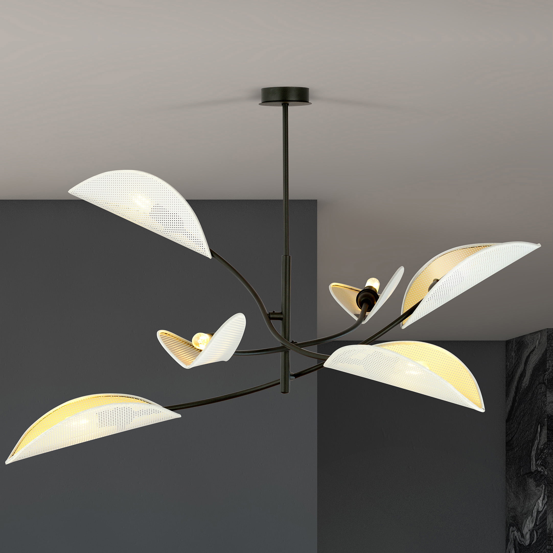 - Dankzij de open lampenkappen zal de LOTUS hanglamp de kamer zeer goed verlichten en een unieke sfeer creëren.