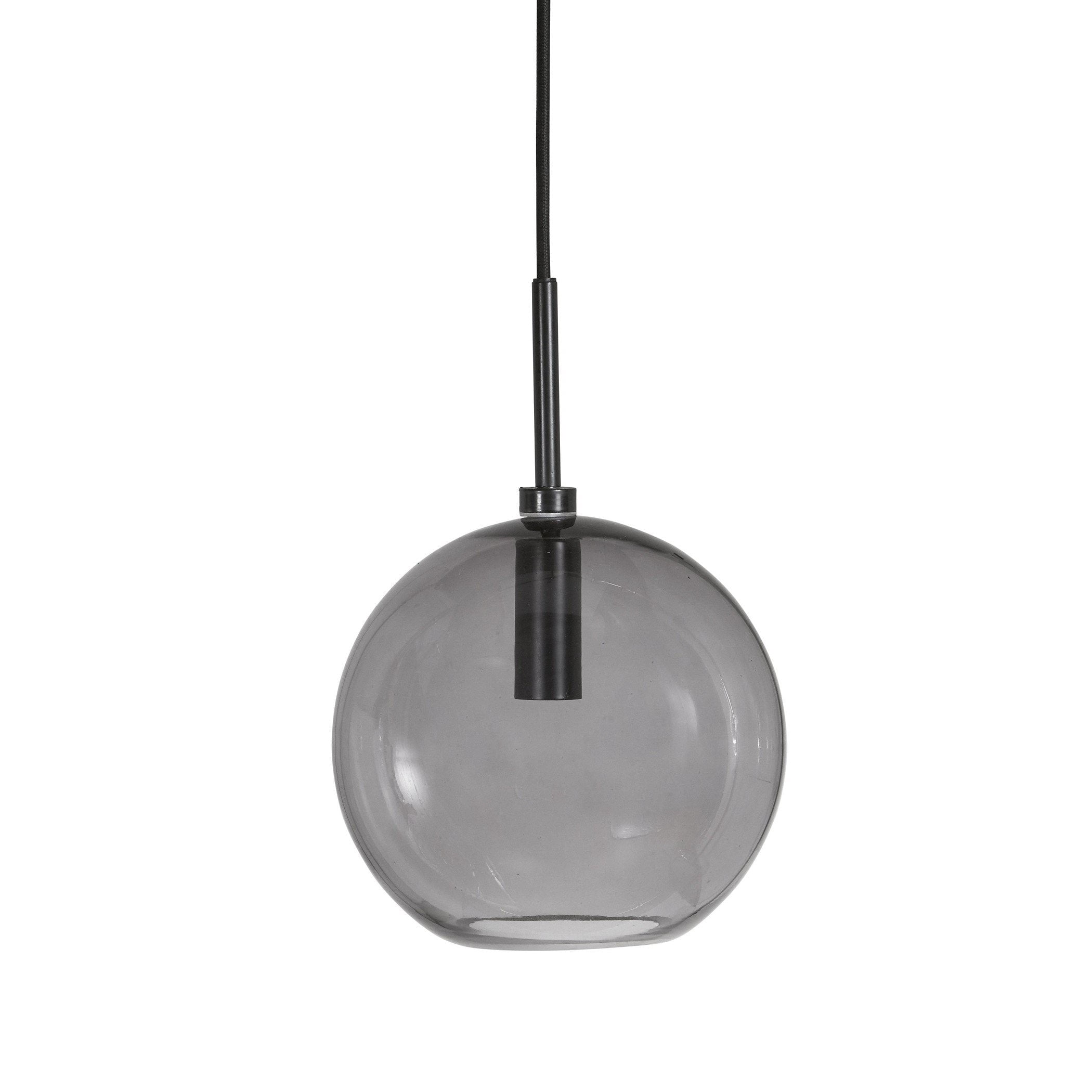 - De lamp is gemaakt van donkergrijs glas en afgewerkt met zwarte metalen elementen.