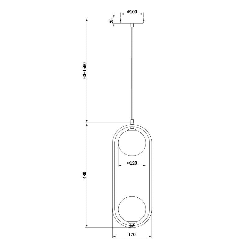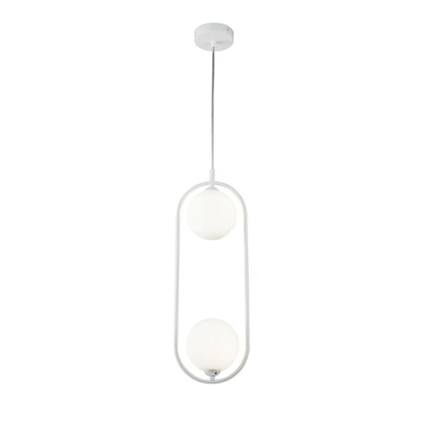 - De bolvormige diffusers zijn op een wit matte metalen ringvormig frame bevestigd dat zowel aan de boven als de onderkant wordt benut.