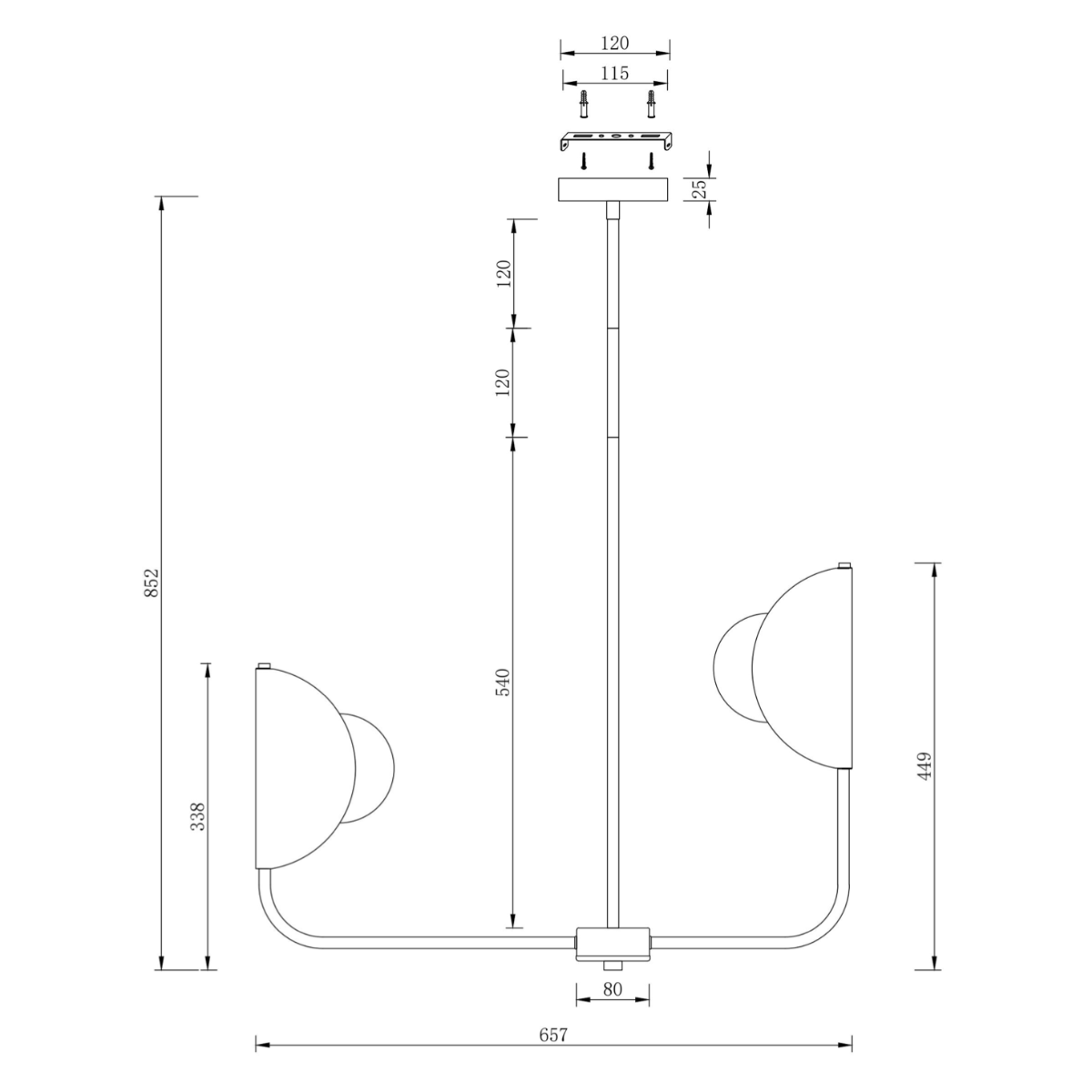 - De lichtbron wordt afgedekt door matglasbollen die zorgen voor zachte, diffuse verlichting.