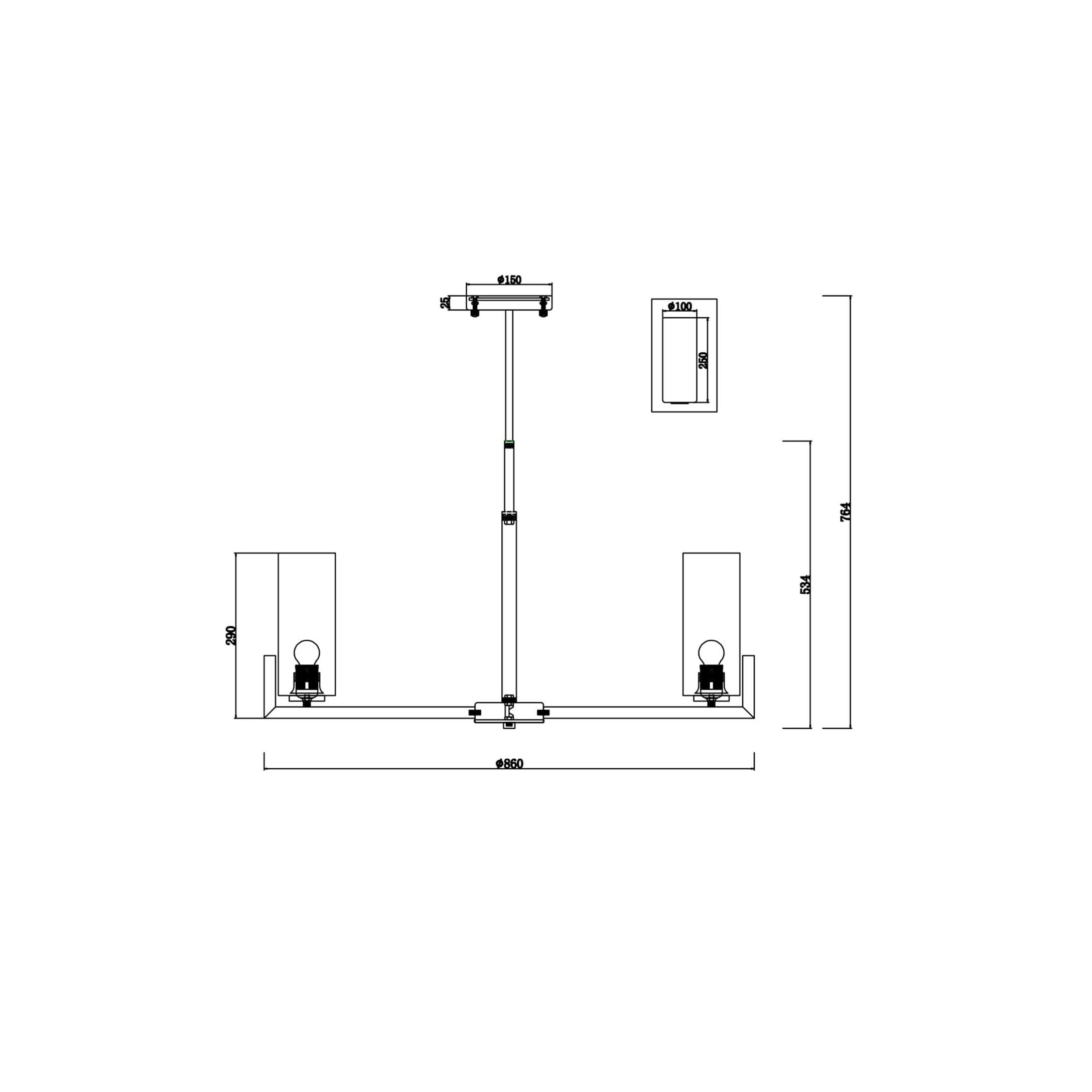 - Messingkleurige metalen frame wordt visueel uitgerekt dankzij de zwart geverfde centrale staaf en rechthoekige armen, dit is een andere techniek die de gewichtloosheid van de lampen benadrukt.