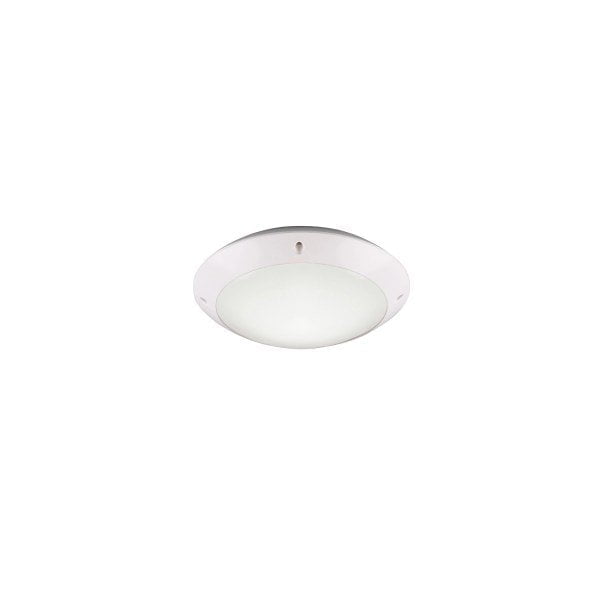 De Camaro is een mat witte plafondlamp van kunststof voor buiten. De lamp heeft een diameter van 26cm en is voorzien van een E27 fitting.