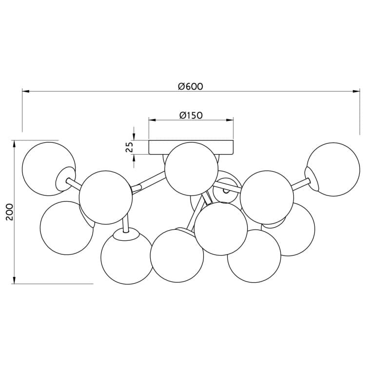 - De belangrijkste materialen van de plafondlamp is glas en metaal.