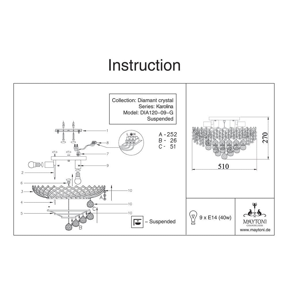 - De kristallen hangers worden los erbij geleverd om beschadigingen te voorkomen, hierdoor dient u die zelf aan de lamp te monteren.
