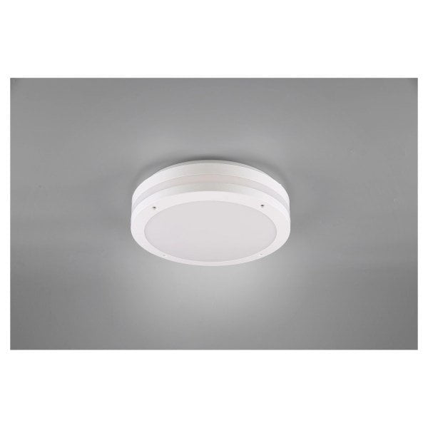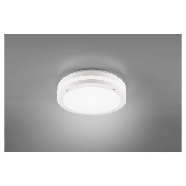 De Kendal is een mat witte plafondlamp van kunststof. De lamp heeft een diameter van 30cm en is voorzien van een 12w LED module.