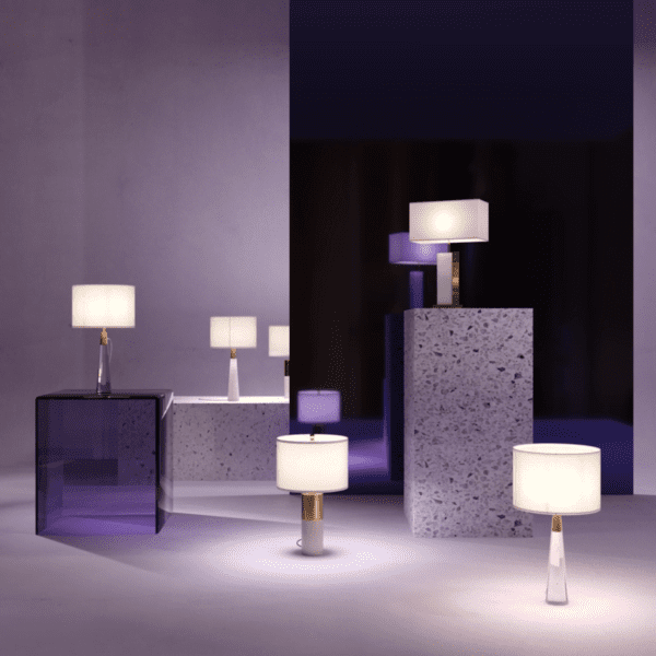 - De interieur tafellamp uit de Bianco serie van de Duitse fabrikant Maytoni is uitgevoerd in de kleur wit en messing metaal met een decoratief element van natuursteen.