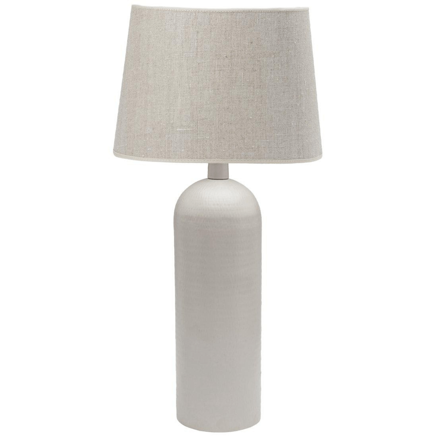 - Riley is een grijze tafellamp gemaakt van gehamerd metaal .