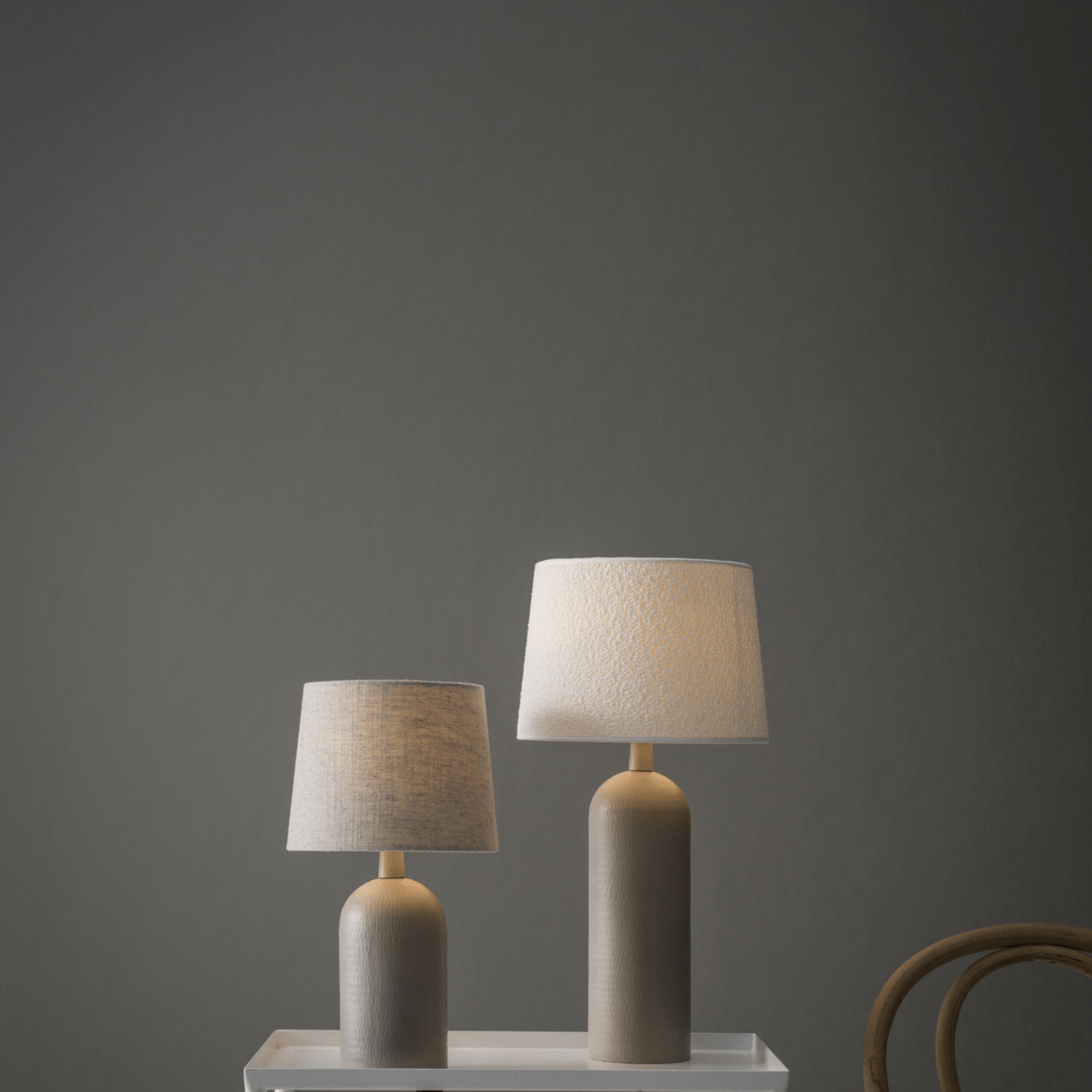 - Voorzien van een cilindervormige katoenen Sara lampenkap met een hoogte van ca 18 cm en heeft een diameter van ca. 25 cm aan de onderkant en ca. 22 cm aan de bovenkant., in licht grijs, en een 1,7 m zwarte kabel met schakelaar en stekker.