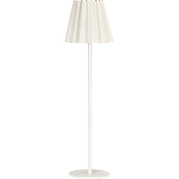 • Sonia een metalen tafellamp compleet met een geplooide metalen kap in dezelfde kleur als de voet.
