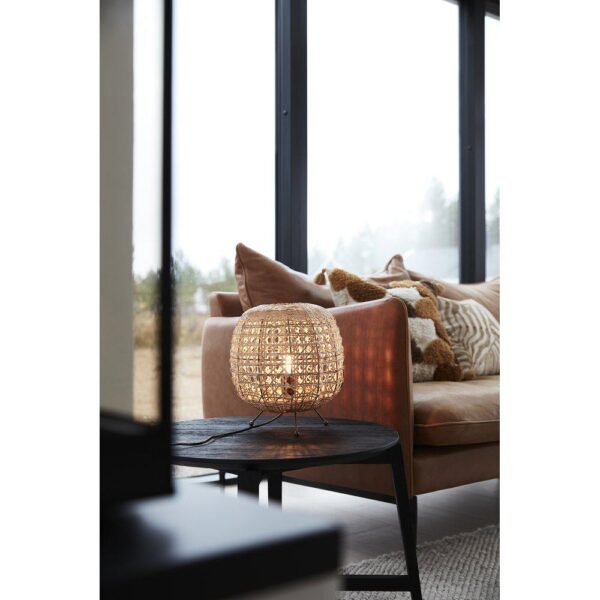 Wickham tafellamp van handgevlochten rotan. Een ronde kleine, makkelijk te plaatsen tafellamp die voor een gezellige gloed zorgt. Hoogte 30cm, breedte 25, diepte 25cm. E27. Maximaal 25W. IP20. 1,6 m zwart plastic snoer met schakelaar. Kleine afwijkingen in patronen en kleurveranderingen kunnen optreden omdat het een natuurlijk materiaal is en met de hand wordt gevlochten.
