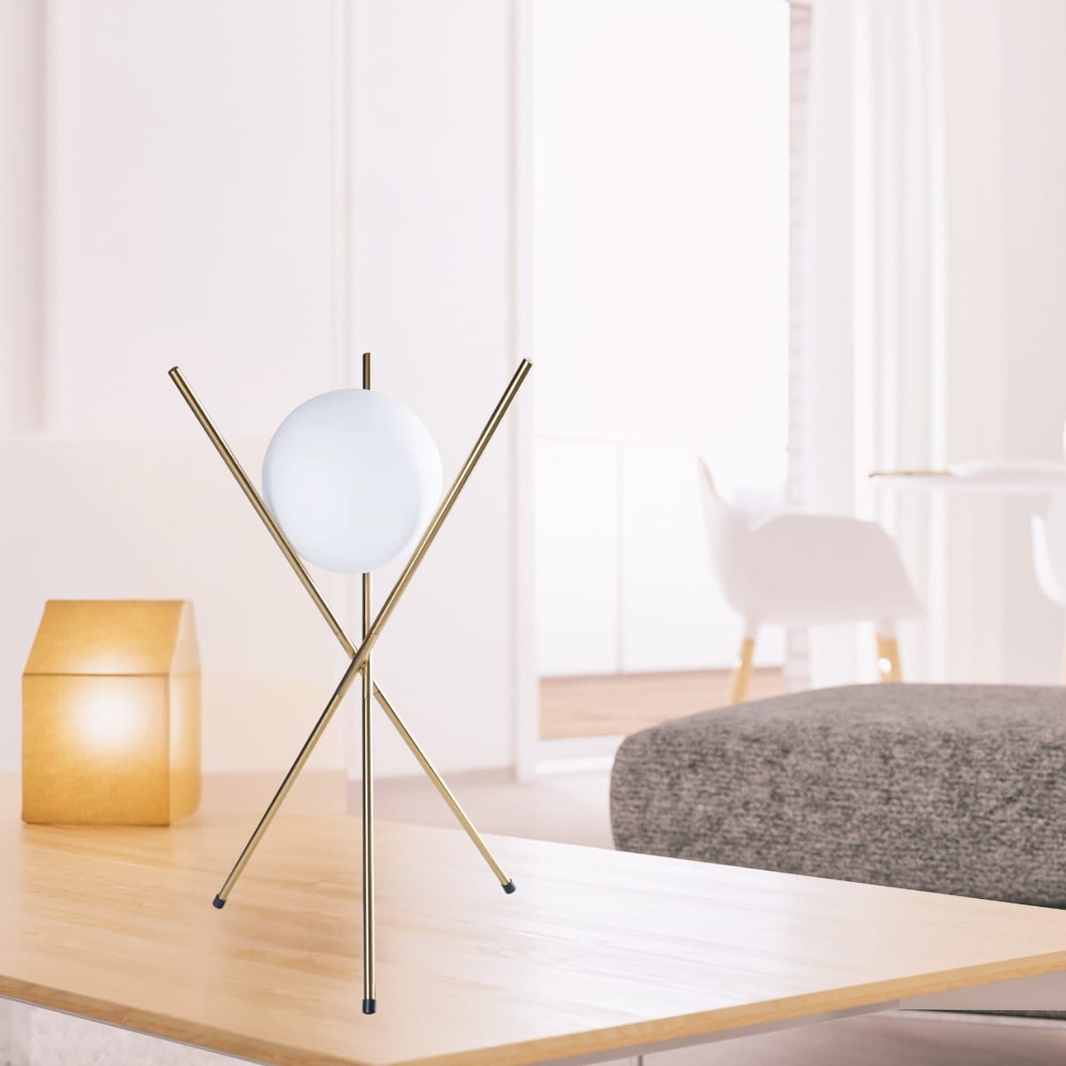 - De Xena tafellamp onderscheidt zich door een prachtige messing afwerking die luxe en warmte uitstraalt, gecombineerd met een modern silhouet dat perfect aansluit bij minimalistische en eigentijdse interieurs.