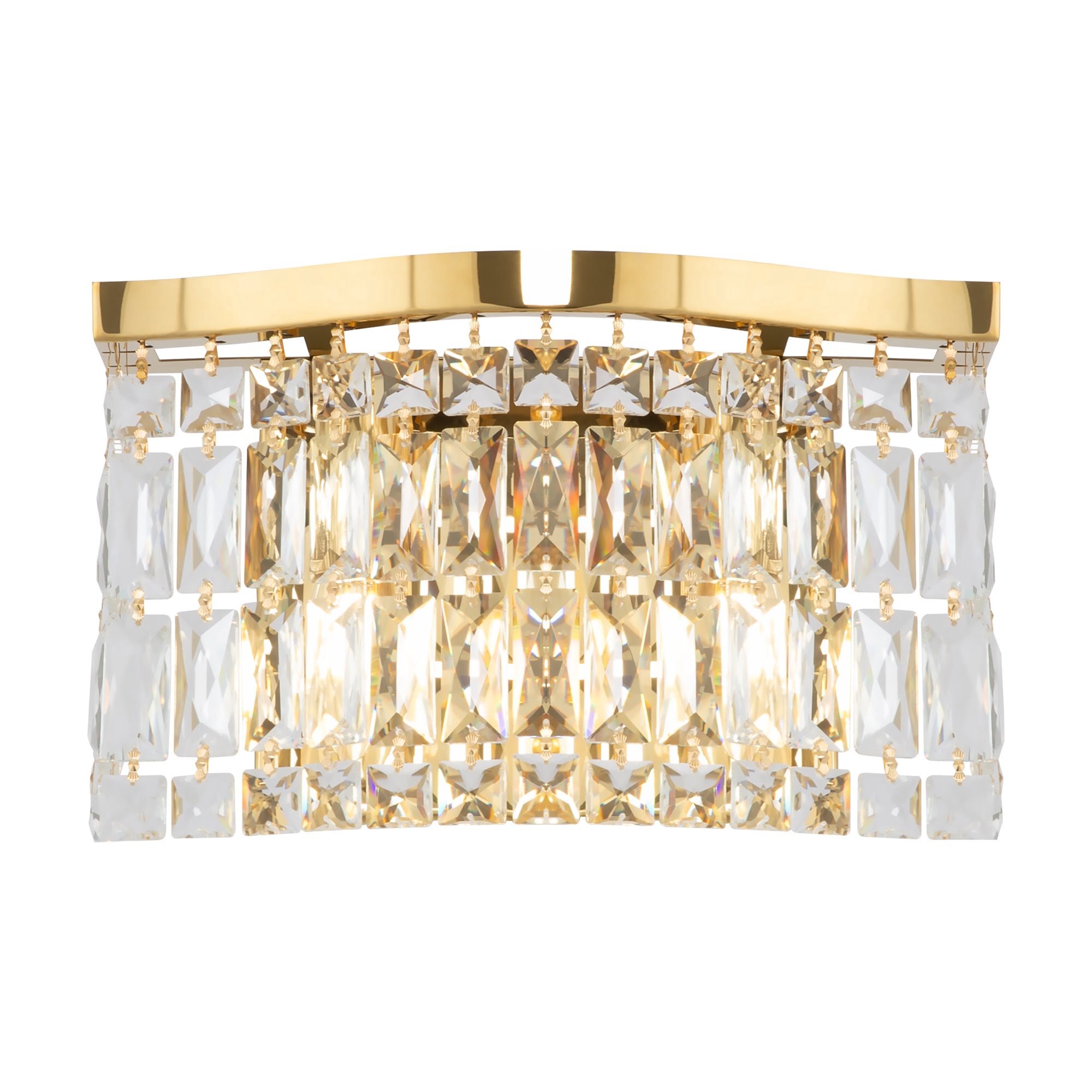 - De fittingen van de armaturen zijn gemaakt van goudkleurig metaal, wat het licht van de lampen weerkaatst.