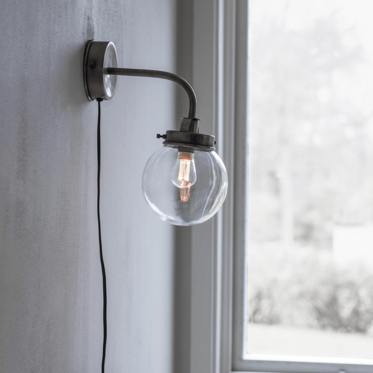 - Bij deze wandlamp zit een 1.8m zwart snoer met een schakelaar ongeveer 30 cm van de lamp.