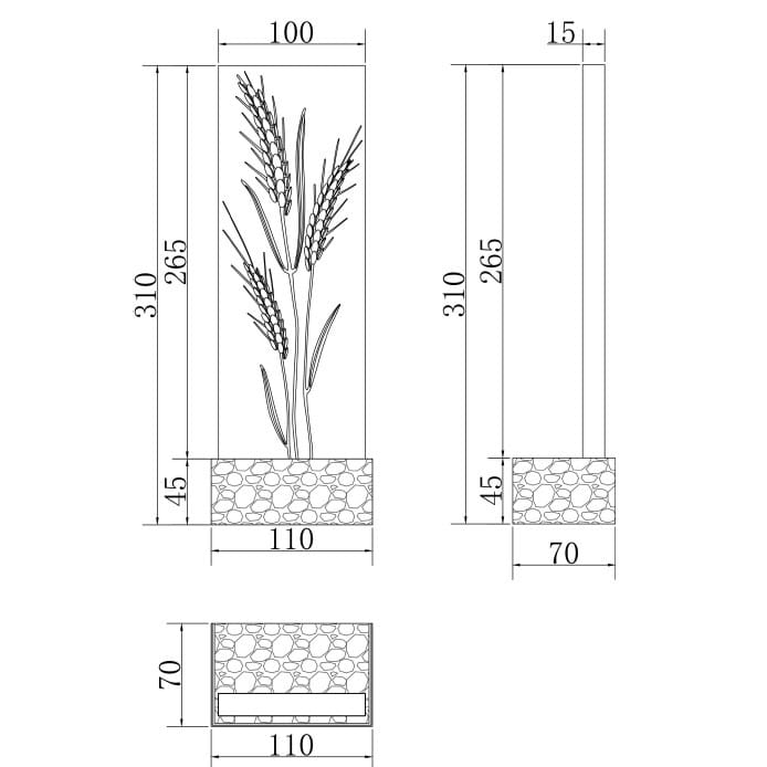 - De lamp combineert een prachtig gehamerde messing voet met een verticale glasplaat waarin een sierlijk tarwemotief is geëtst.