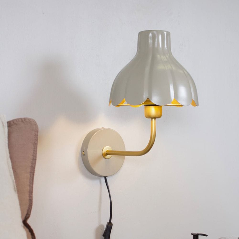 Deze wandlamp transformeert de iconische bloemvorm naar een elegant muurobject. Het handgemaakte scherm met zijn organische, overlappende structuur is een kunstwerk op zich. De zachte lijnen en goudkleurige binnenkant vangen het licht en creëren een levendig, warm effect dat de muur tot leven brengt.