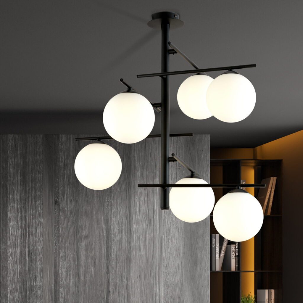 Hanglamp Concord 6 Zwart/Opaal Ø 60 cm (Retourdeal)